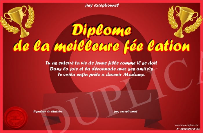 Envoyez par email votre Diplôme de la meilleure fée lation personalisé