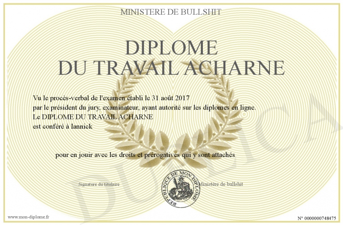 Envoyez par email votre DIPLOME DU TRAVAIL ACHARNE personalisé