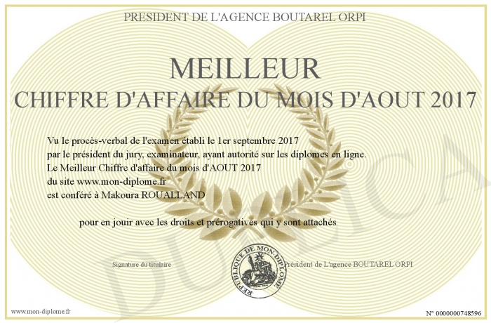 Envoyez par email votre Meilleur Chiffre d'affaire du mois d'AOUT 2017 personalisé