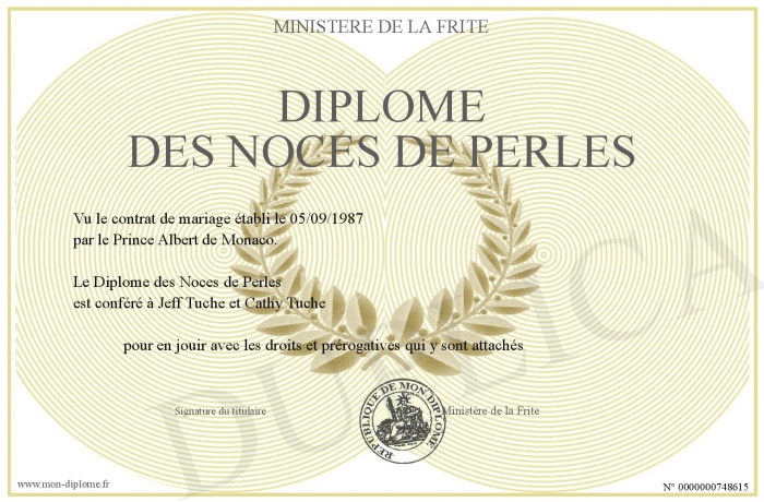 Envoyez par email votre Diplôme des Noces de Perles personalisé
