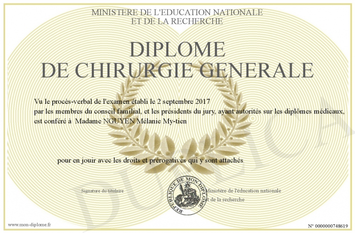Envoyez par email votre Diplôme de chirurgie générale personalisé