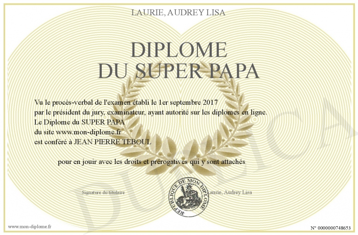 Envoyez par email votre Diplôme du SUPER PAPA personalisé