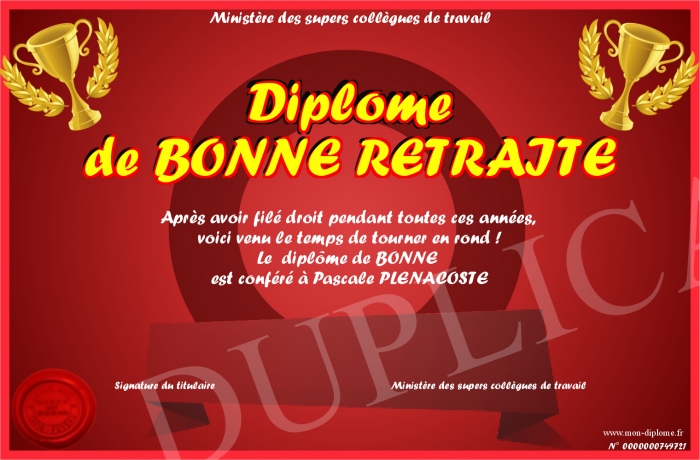 Envoyez par email votre Diplôme de BONNE RETRAITE personalisé