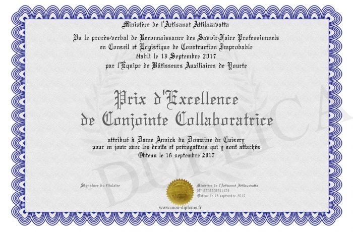 Envoyez par email votre Prix d'Excellence de Conjointe Collaboratrice personalisé