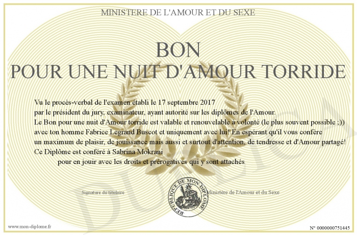 Envoyez par email votre Bon pour une nuit d'Amour torride personalisé