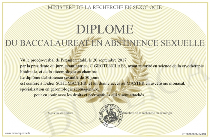 Envoyez par email votre Diplôme du baccalaureat en Abstinence sexuelle personalisé