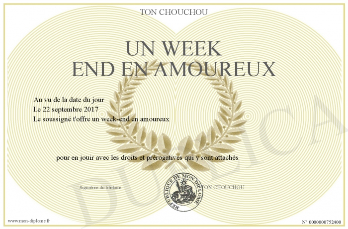 Envoyez par email votre UN WEEK END EN AMOUREUX personalisé