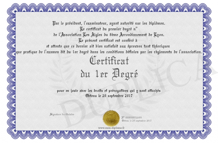 Envoyez par email votre Certificat du 1er Degré personalisé