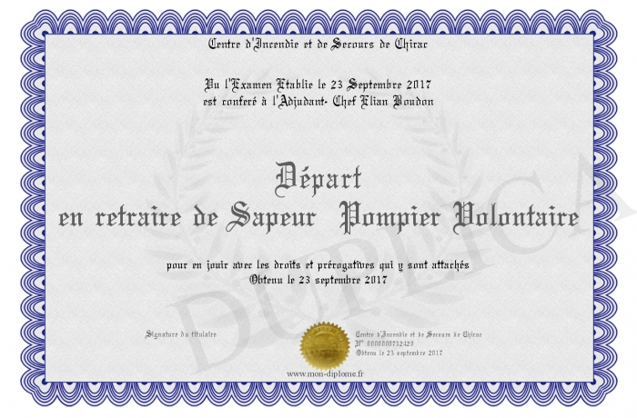 Envoyez par email votre Départ en retraire de Sapeur Pompier Volontaire personalisé
