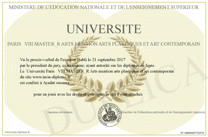 Envoyez par email votre Université Paris VIII MASTER_R Arts mention arts plastiques et art contemporain personalisé