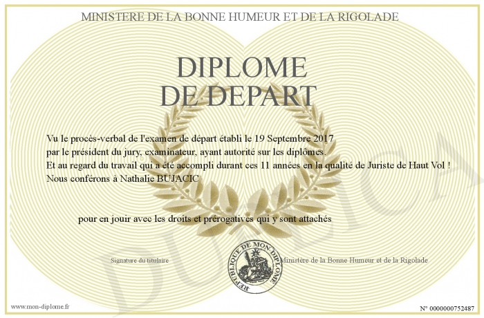 Envoyez par email votre Diplôme de Départ personalisé