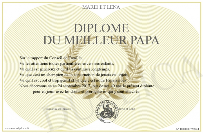 Envoyez par email votre DIPLOME DU MEILLEUR PAPA personalisé