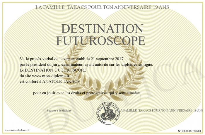 Envoyez par email votre DESTINATION FUTUROSCOPE personalisé