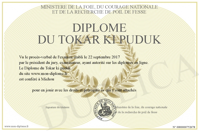 Envoyez par email votre Diplôme du Tokar ki puduk personalisé