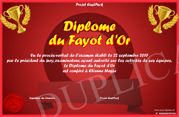 Envoyez par email votre Diplôme du Fayot d'Or personalisé