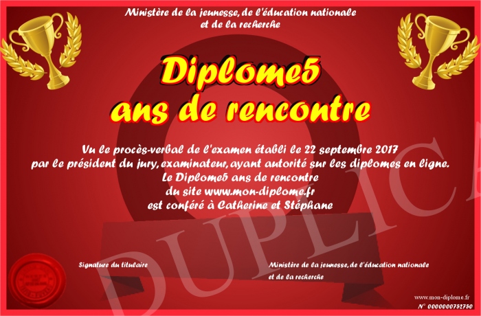 Envoyez par email votre Diplôme5 ans de rencontre personalisé