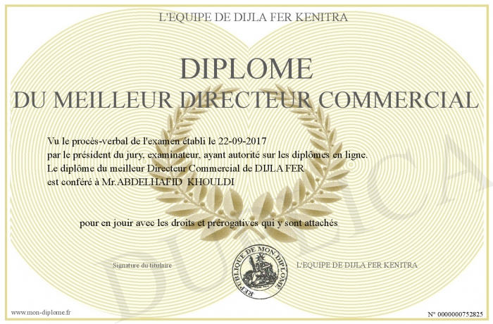 Envoyez par email votre Diplôme du meilleur DIRECTEUR COMMERCIAL personalisé