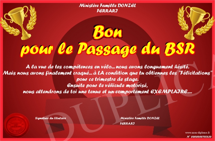 Envoyez par email votre Bon pour le Passage du BSR personalisé