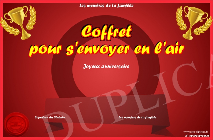 Envoyez par email votre Coffret pour s'envoyer en l'air personalisé