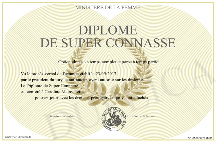 Envoyez par email votre Diplôme de Super Connasse personalisé
