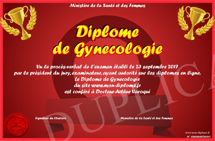 Envoyez par email votre Diplome de Gynecologie personalisé