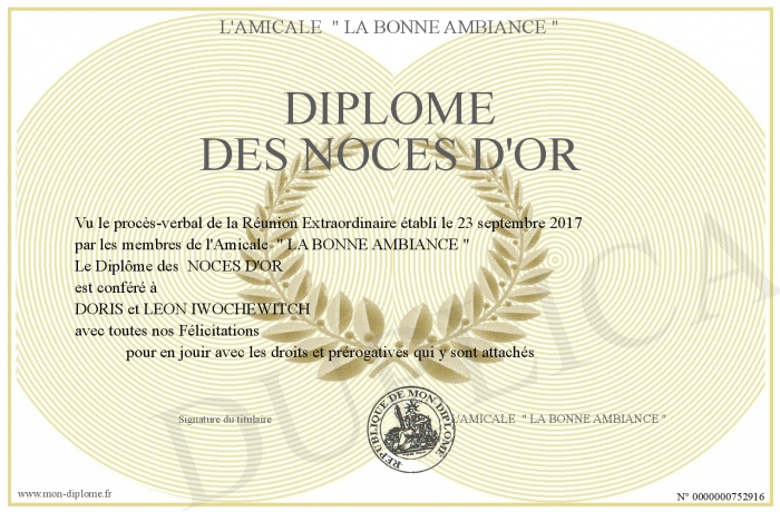 Envoyez par email votre Diplôme DES NOCES D'OR personalisé