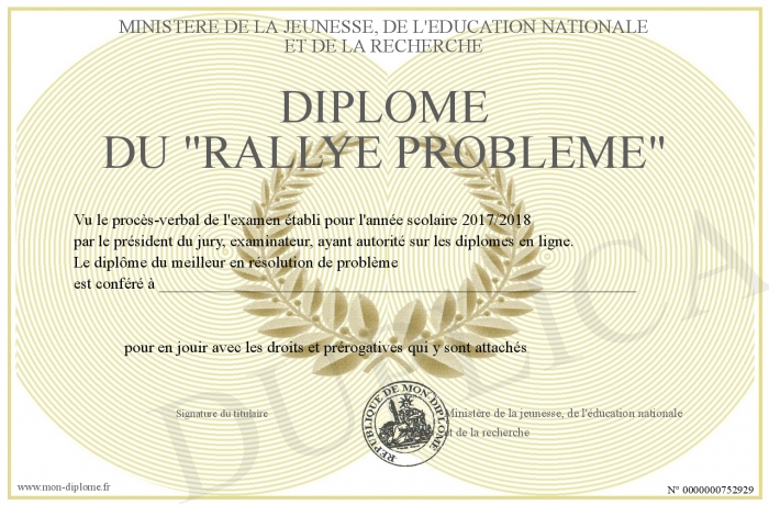 Envoyez par email votre Diplôme du -Rallye problème- personalisé