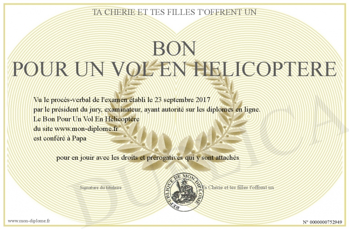 Envoyez par email votre Bon Pour Un Vol En Hélicoptère personalisé