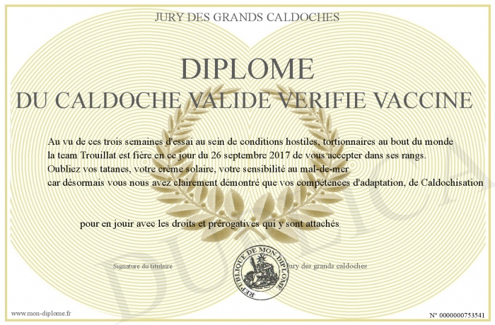 Envoyez par email votre Diplôme du caldoche valide verifie vaccine personalisé