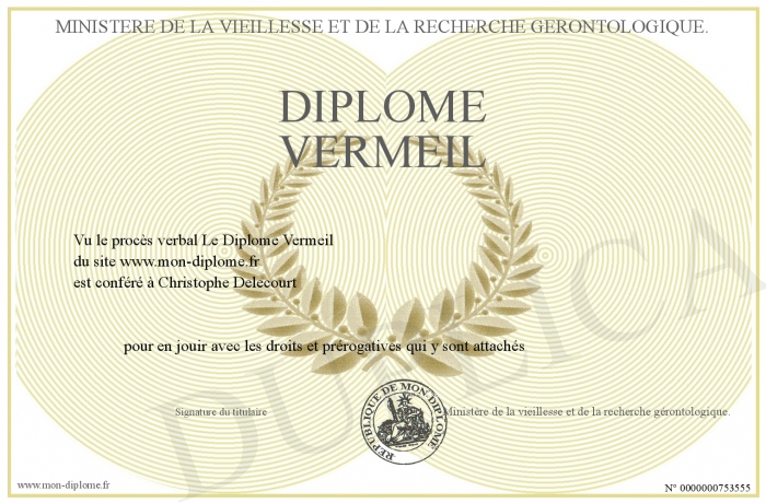 Envoyez par email votre Diplôme Vermeil personalisé