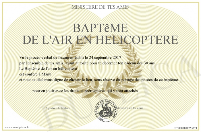 Envoyez par email votre Baptême de l'air en hélicoptère personalisé