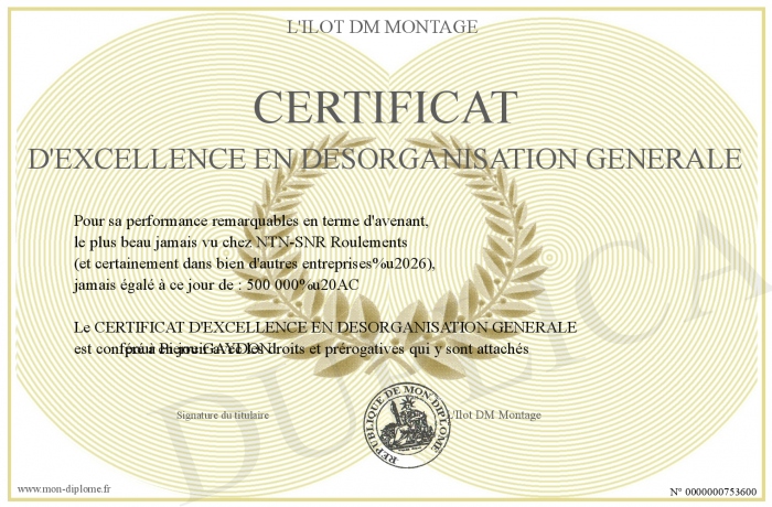 Envoyez par email votre CERTIFICAT D'EXCELLENCE EN DESORGANISATION GENERALE personalisé
