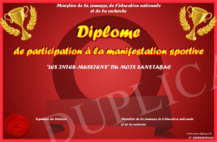 Envoyez par email votre Diplôme de participation à la manifestation sportive personalisé