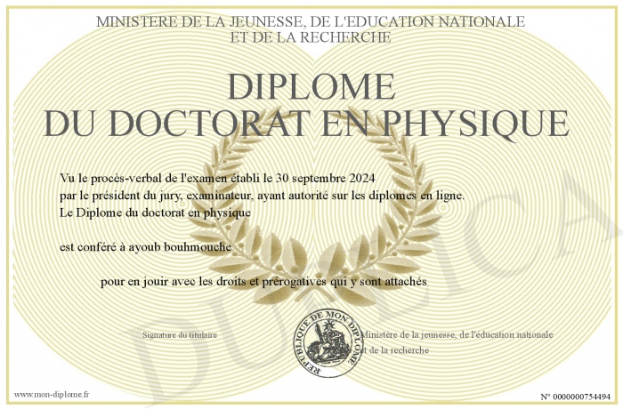 Envoyez par email votre Diplome du doctorat en physique personalisé