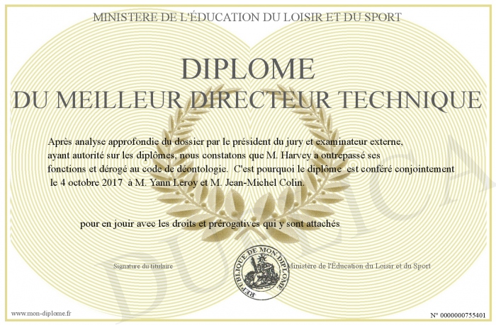 Envoyez par email votre Diplôme du meilleur Directeur Technique personalisé