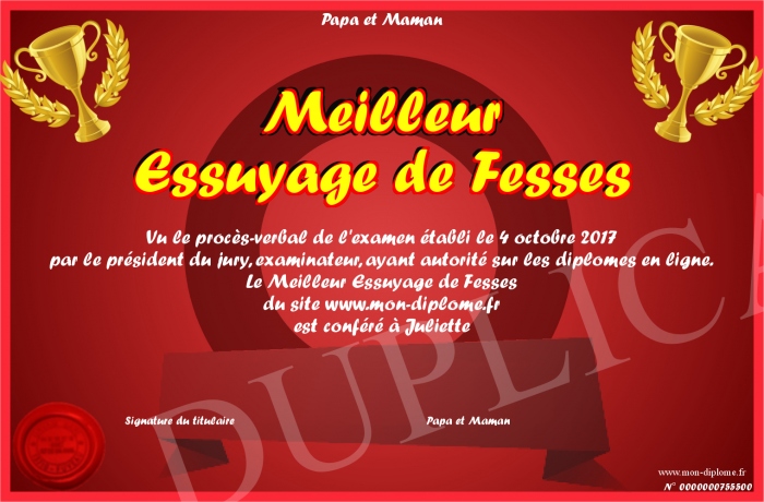Envoyez par email votre Meilleur Essuyage de Fesses personalisé