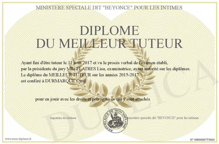 Envoyez par email votre Diplôme du meilleur tuteur personalisé