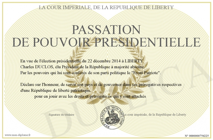 Envoyez par email votre Passation de pouvoir presidentielle personalisé