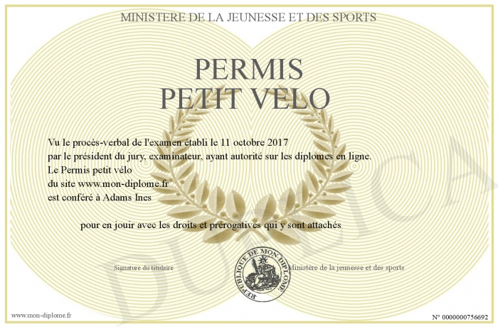 Envoyez par email votre Permis petit vélo personalisé