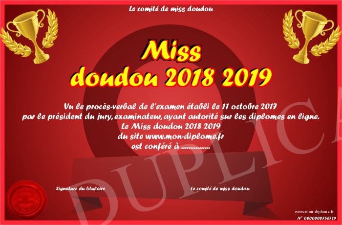 Envoyez par email votre Miss doudou 2018 2019 personalisé