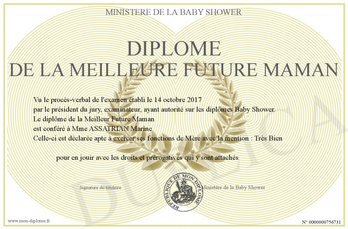 Envoyez par email votre Diplôme de la meilleure future maman personalisé