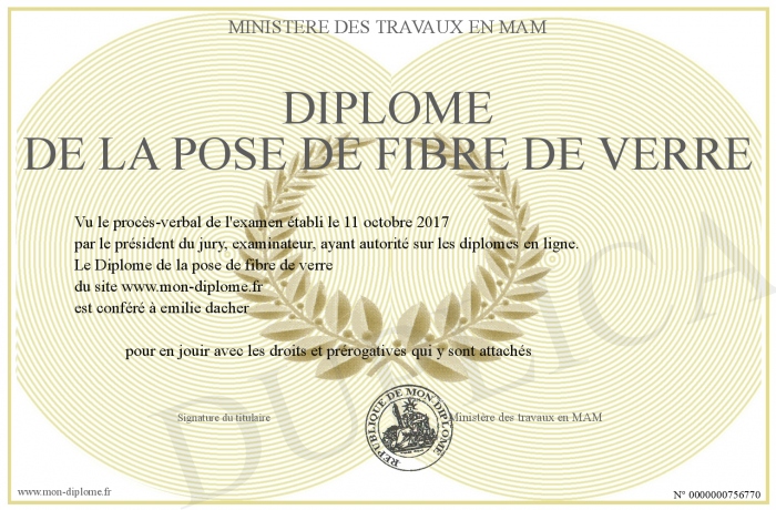 Envoyez par email votre Diplôme de la pose de fibre de verre personalisé