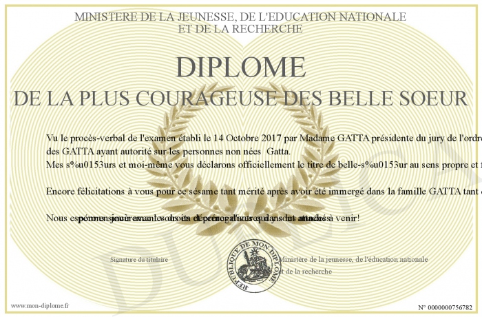 Envoyez par email votre Diplôme de la plus courageuse des belle soeur personalisé