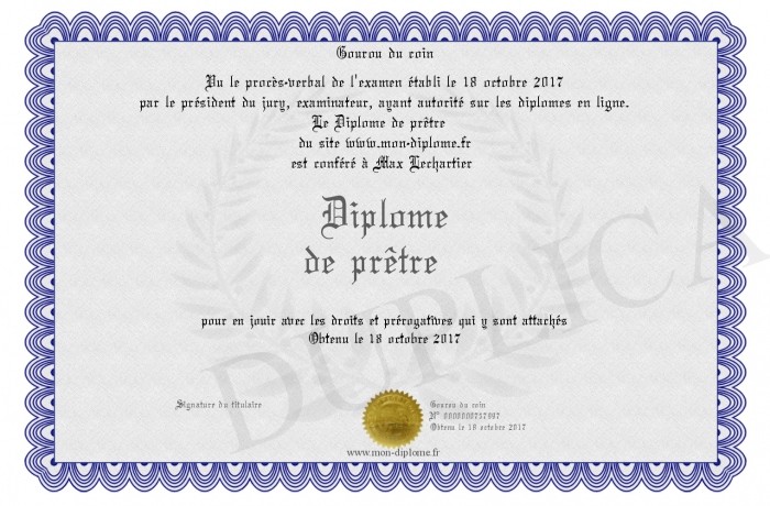 Envoyez par email votre Diplôme de prêtre personalisé