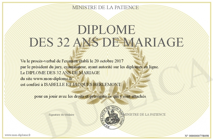 Envoyez par email votre DIPLOME DES 32 ANS DE MARIAGE personalisé