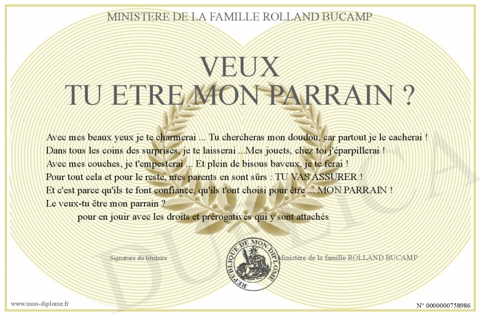 Envoyez par email votre veux tu etre mon parrain ? personalisé