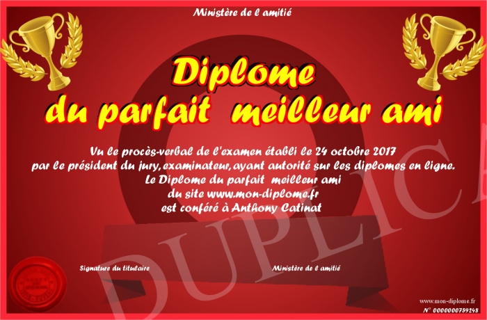 Envoyez par email votre Diplôme du parfait meilleur ami personalisé
