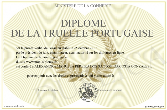 Envoyez par email votre Diplôme de la Truelle portugaise personalisé