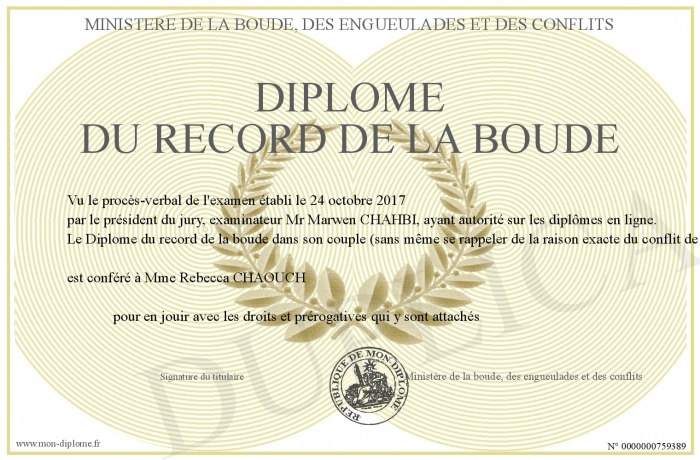 Envoyez par email votre Diplôme du record de la boude personalisé