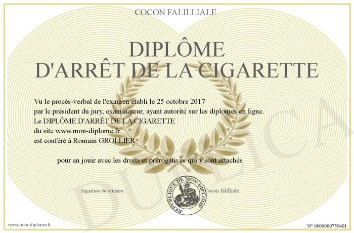 Envoyez par email votre DIPLÔME D'ARRÊT DE LA CIGARETTE personalisé